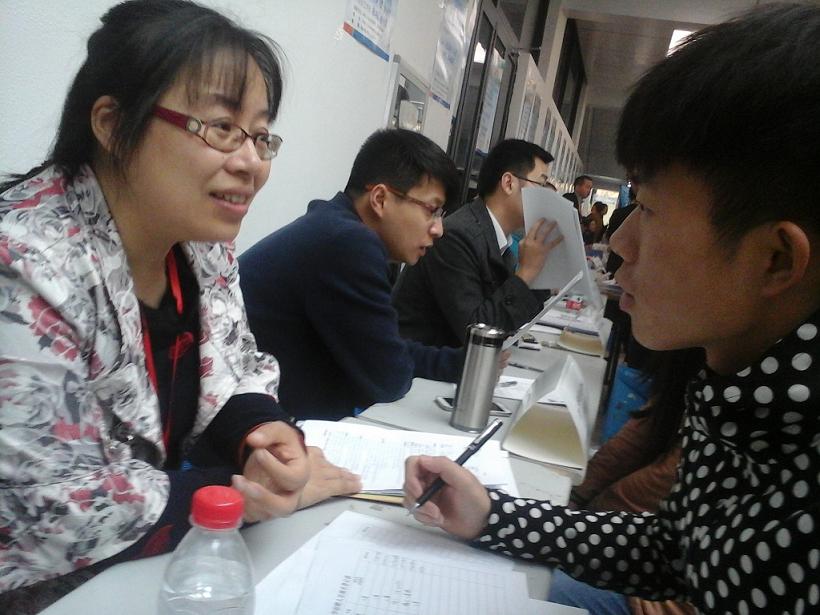 办公室副主任赵蓉对应聘大学生进行第一轮面试 图(1)