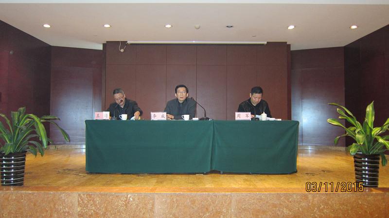 董事长李威(居中)、常务副总王淳(左一)、副总周军(右一)主持会议 图(1)