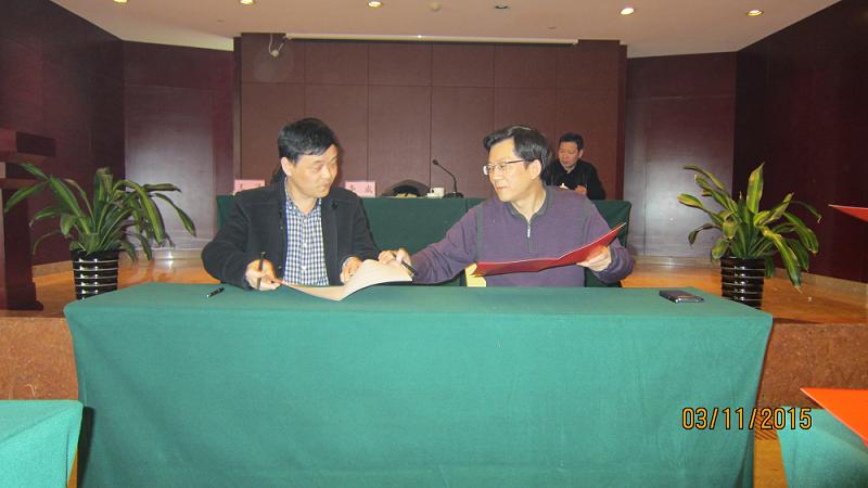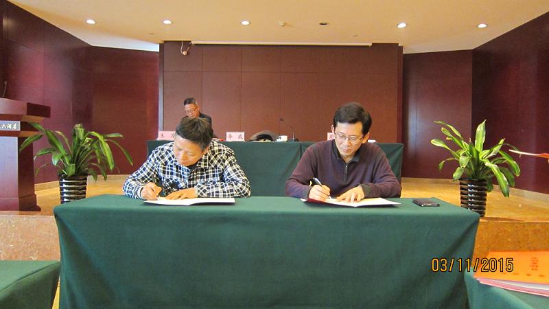 董事长李威(右一)与财务部部长张国银(右二)签订2015年责任状 图(8)
