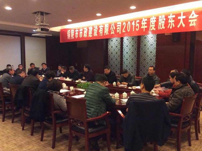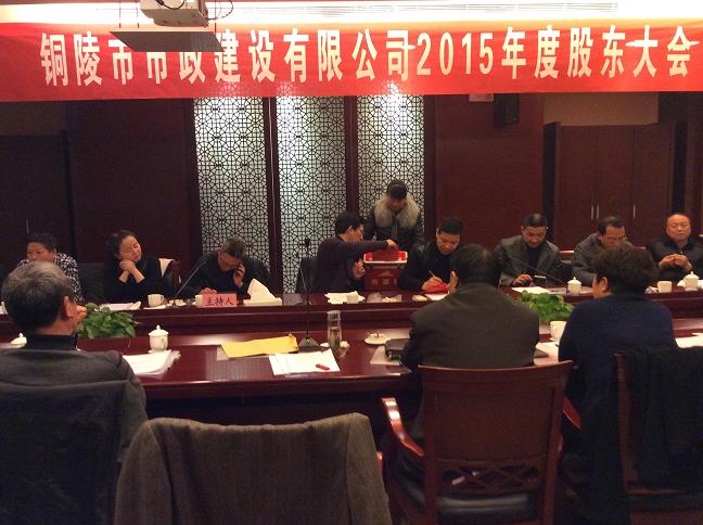 公司2015年度股东大会于3月11日下午在铜都大酒店三楼会议室召开。董事长李威、主要领导班子成员和股东出席本次会议,刘显喜、赵成年、周建波同志列席会议,会议由常务副总王淳主持。