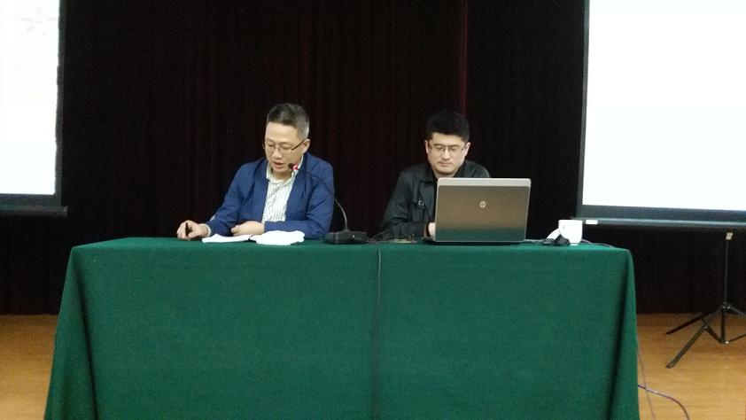 常务副总王淳(左一)致开讲词并代表公司向讲师刘正权表示欢迎(右一) 图(1)