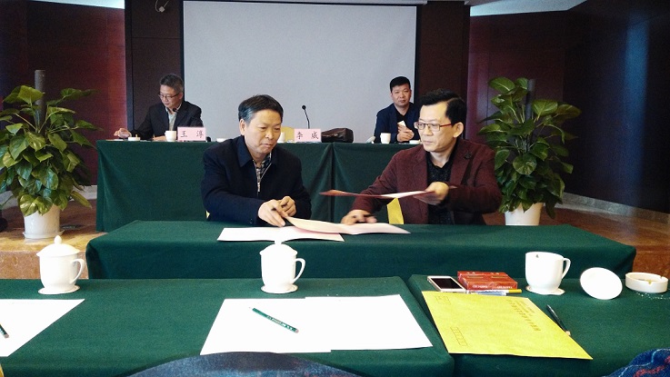 董事长李威(右一)与财务部部长张国银(右二)签订2016年责任状 图(7)