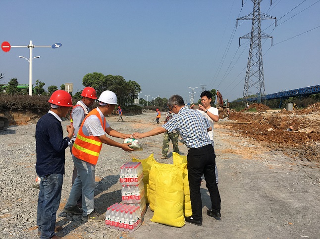 7月28日上午,骄阳似火,暑热逼人,公司常务副总王淳带领综合办、经营部、财务部、工程部和安全部有关人员代表集团公司领导到重点工程建设施工现场慰问一线员工,带来深情关怀,送去夏日清凉。