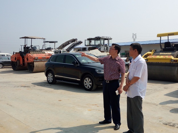 2016年8月18日上午,总公司董事长李威、财务总监王雯、副总曹小钗和邦威园林子公司负责人汪梅在沥青拌合站负责人郑铜明的陪同下视察并参观了新基地的各项建设成果和设备运行情况,董事长李威对沥青拌合站近一段时间的工作给予充分肯定,并对今后的工作提出了殷切的期望。