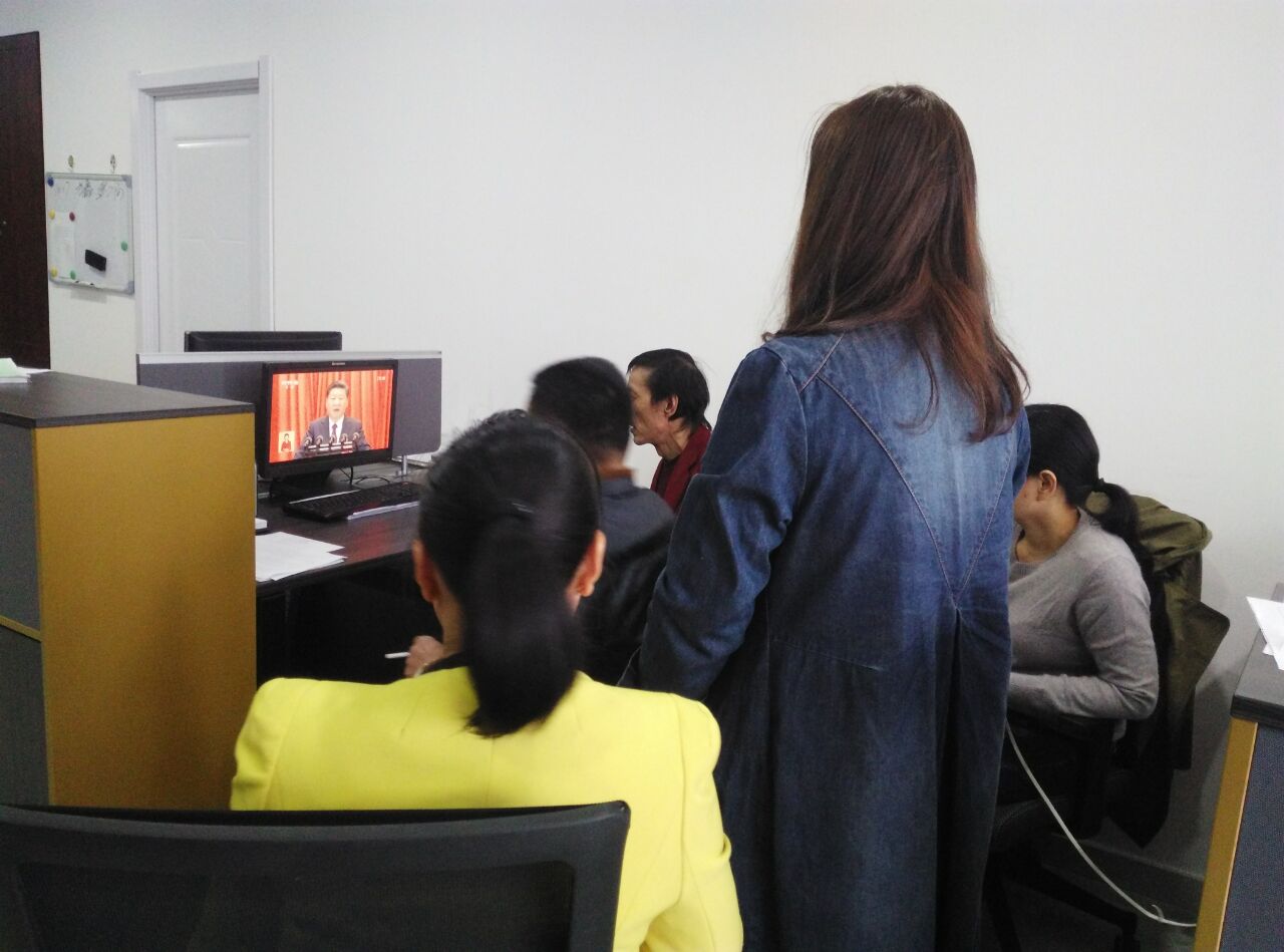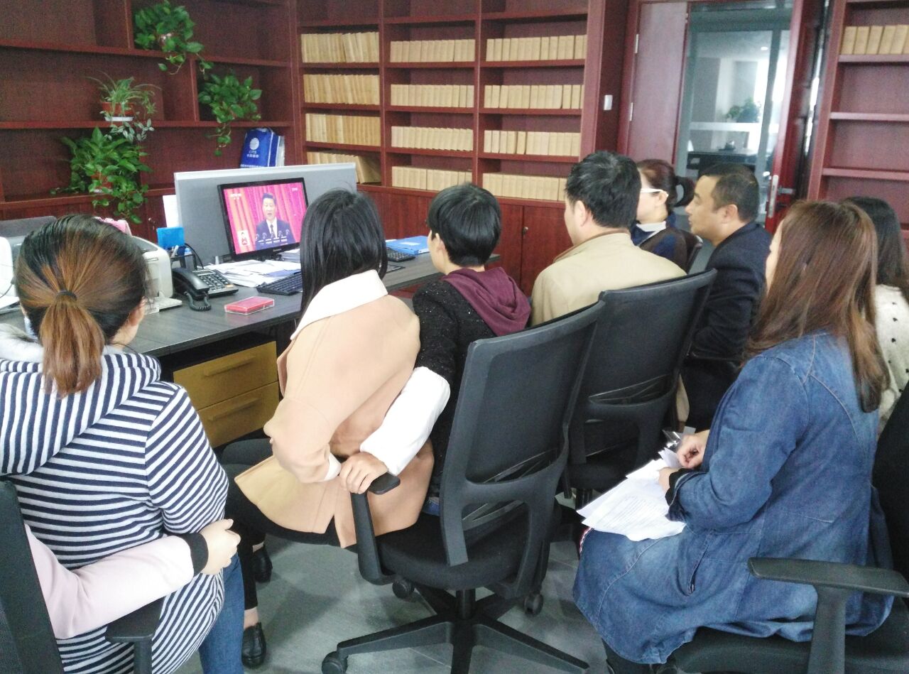 公司综合办全体员工在办公室认真观看十九大开幕式 图(6)