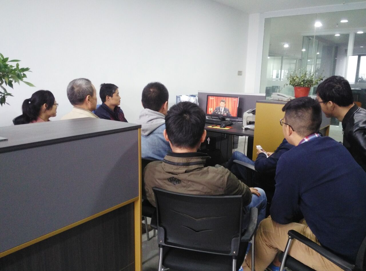 公司工程、风控、安全部全体员工在办公室认真观看十九大开幕式 图(5)