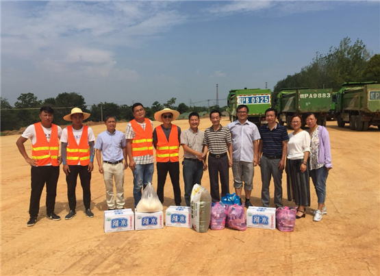 7月24日和25日上午,财务总监王雯、总经理助理储昭胜带领公司综合办、安全部、工程部、风控部等职能部室人员前往宣城市九连山路项目部、铜陵市嘉合科技聚酰胺仓库道路管网项目部及安徽建川检测公司,开展高温季节“向一线工人送清凉”慰问活动。公司领导将仁丹、清凉油、十滴水、绿豆、白糖、毛巾、矿泉水等防暑降温慰问品亲手送到项目部负责人及一线员工手中,感谢大家的辛勤付出,希望大家在工作中保重身体,保持愉悦心情。同时要求项目部负责人坚持“安全生产、以人为本”的安全理念,严格贯彻执行主管部门及公司制定的高温季节安全生产工作要求,合理安排一线员工的作息时间,充分保障防暑降温物品供应,确保高温季节施工生产安全。
