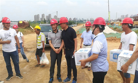 8月3日上午,公司总经理助理储昭胜带领综合办、安全部、工程部、风控部等生产部门员工赶赴庐江县泥河路工程项目部,开展“向一线工人送清凉”慰问活动。储总代表公司领导班子亲手将慰问品送到项目负责人和工人手中,对所有作业人员的辛勤工作表示感谢,希望大家保重身体,保持愉悦心情。