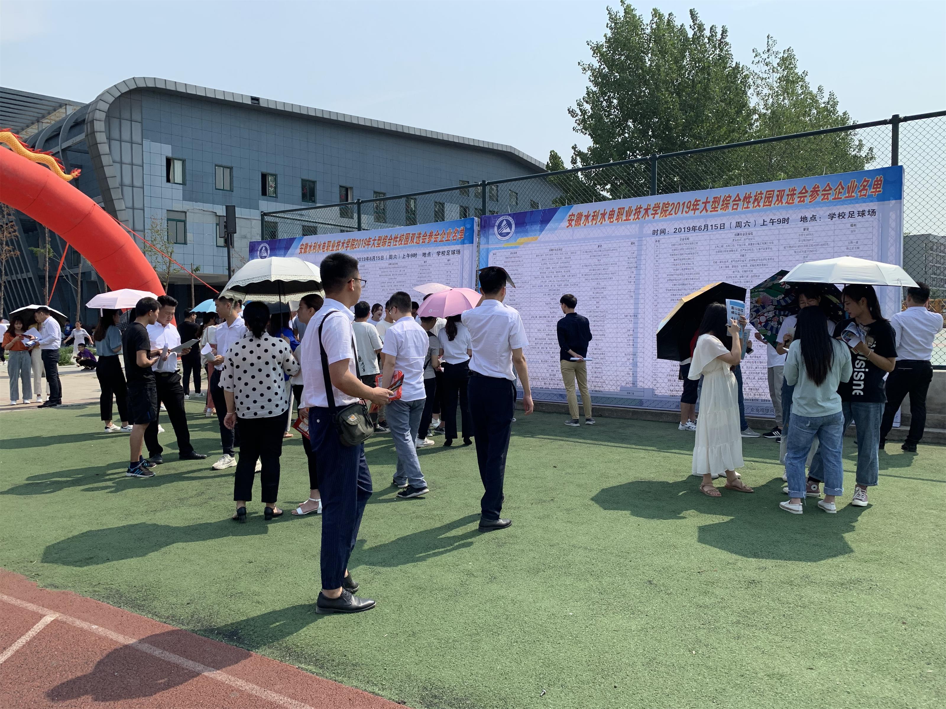 2019年6月15日上午,公司综合办、下属检测公司、沥青公司一行六人前往安徽水利水电职业技术学院参加2019届、2020届学生就业双选会。参加招聘会企业共126家,包含了水利行业、市政行业、建筑行业以及电子行业的公司,面对市场的招聘压力(含地域、工资等差别),尤其是安徽水安建设集团股份有限公司这样的大型公司的参与,导致公司招聘形势比较严峻。