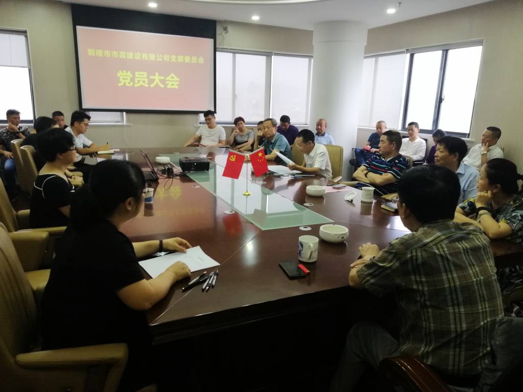 2019年7月9日上午9点,在公司十五楼会议室召开了中共铜陵市市政建设有限公司支部委员会党员大会,五松社区党委副书记王彩虹、公司党建指导员刘晓岚出席了会议。